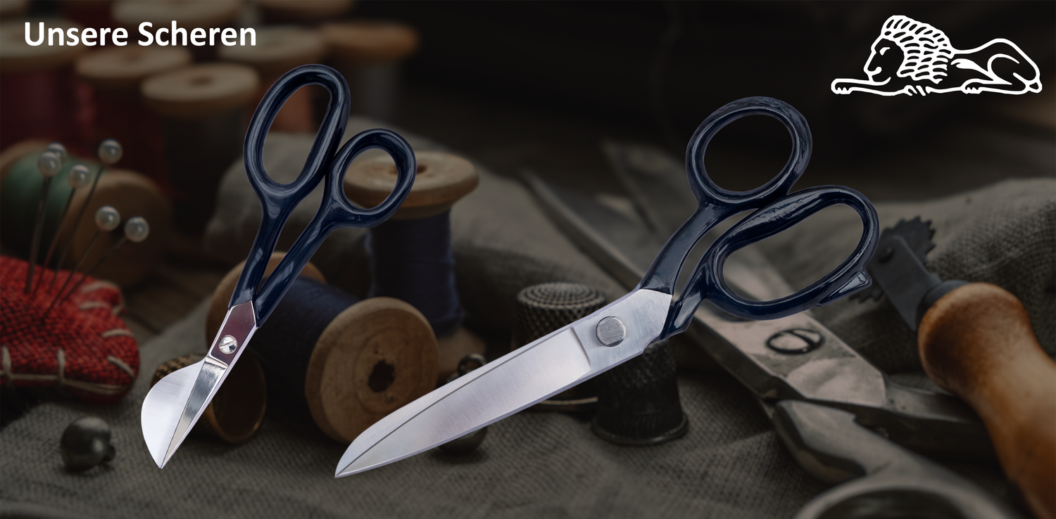 Auch wenn Scheren kein Schwerpunkt unseres Produktprogramms mehr sind, so möchten wir doch zwei spezielle, „semi-professionelle“ Scheren weiter anbieten – die Docht- / Teppichschere und die klassische Schneiderschere.